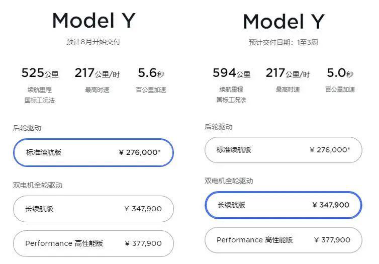 標準續航版在 7 月 8 日上線之前,Model Y 有兩個版本——長續航版本、Performance 高性能版,均為雙電機全輪驅動。Performance 高性能版暫時還未交付,所以實際在售的主要是長續航版。過去半年特斯拉車主們買的 Model Y,基本都是這一款。