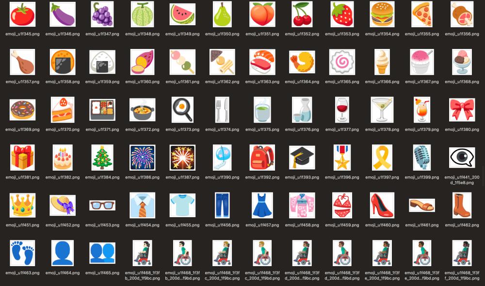 食物表情符號(hào)(羊角面包、米飯、培根、天婦羅)換成新設(shè)計(jì)的動(dòng)畫。