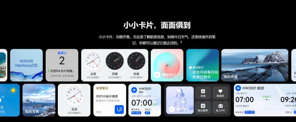 首先,可能是因為系統內核不同的緣故,EMUI 12 并不支持 HarmonyOS 2 系統特有的萬能卡片功能。備受好評的萬能卡片不僅可以個性化展示與用戶高度相關且必要的信息,還允許用戶直達應用內部的各種服務,在簡化手機操作體驗的同時,讓用戶得以打造具有個人風格的桌面。