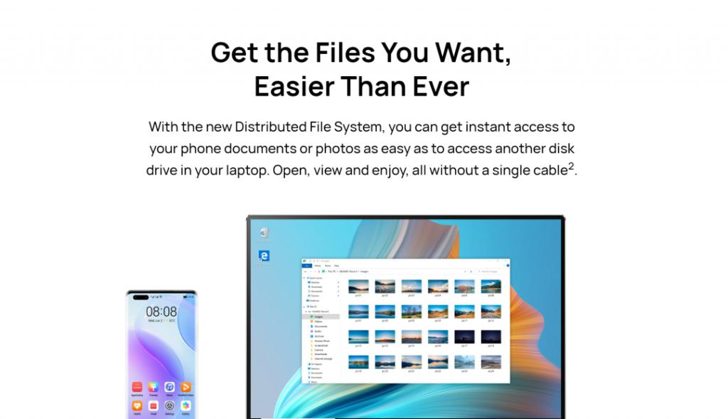 不僅如此,EMUI 12 甚至支持全新的分布式文件管理。只需通過無線連接,用戶就可以跨設備訪問文件,通過電腦、平板即可直接管理手機的文件,就像訪問電腦中的另一個磁盤驅動器一樣簡單。通過熟悉的文件夾式布局查找文件、調取圖片更是得心應手,做起事情來事半功倍。