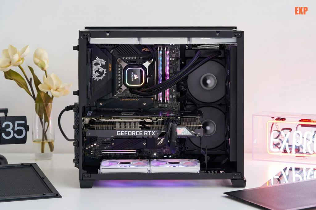 在一般的機(jī)箱中,如果玩家是想 CPU 用一體式水冷,同時(shí)又使用一體式水冷顯卡的話,那么就只能上置以及前置水冷。但是在 O11 AIR MINI 上,玩家就可以選擇把水冷排側(cè)置以及下置,同時(shí)又多裝幾把風(fēng)扇在機(jī)箱里加強(qiáng)散熱。