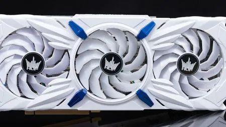 影馳 RTX 3070 Ti HOF PRO 的外觀與影馳 RTX 30 HOF/HOF Extreme 系列顯卡有點不一樣,顯卡整卡采用全新的白色 " 天使 " 元素,并用藍色部件進行點綴,整體配色與此前的 RTX 30 HOF/HOF Extreme 系顯卡相比更偏冷色調一些。這塊顯卡的尺寸是 303*133*64mm,基本上就是一塊三槽的顯卡。