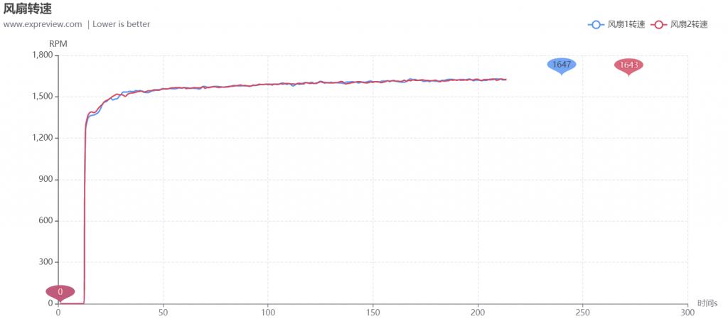 在溫度測試直接裸機,測試環(huán)境溫度約為 28 ℃,待機溫度是開機以后記錄 5 分鐘,滿載溫度則是在運行 3DMark Time Spy Extreme 壓力測試中取得,數據通過 GPU-Z 的 Log to File 功能記錄,以下為溫度測試曲線: