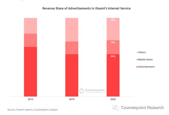 IT 之家獲悉,報告稱,小米的互聯網服務包括手機游戲運營、電子商務(E-commerce)、金融科技和廣告等服務產品。目前,小米的互聯網服務大部分收入來自于廣告。