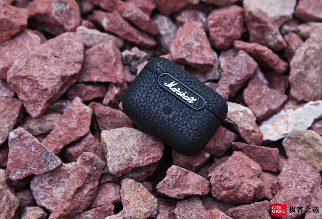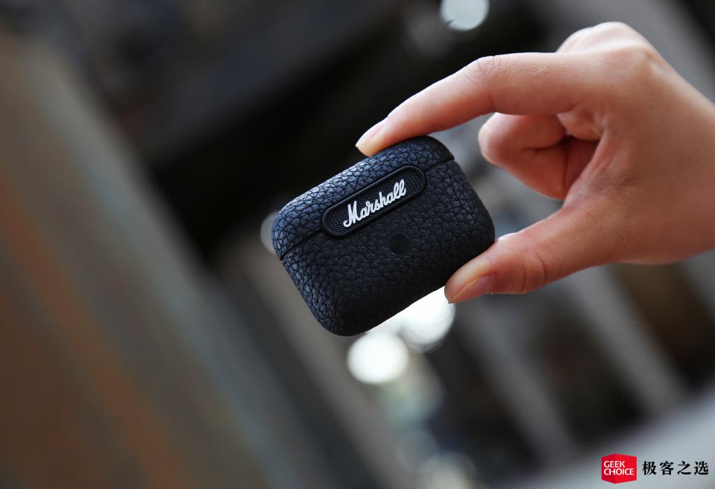 就像圖中所展示的這樣,Marshall 將自家經典的設計語言完美帶到了這款耳機上,白色手寫體 Marshall 標志搭配黑色復古荔枝紋皮極具辨識度。更細節的地方在于,當你打開充電盒的時候,第一眼就能看到那行金色的 EST.1962 字樣,悠久的品牌歷史,讓產品本身更有說服力。