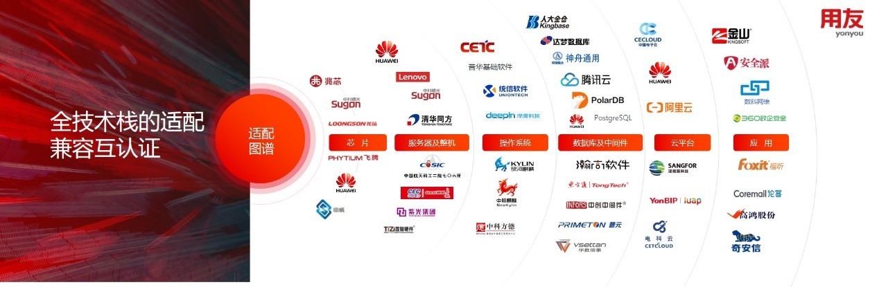 結合企業數智化、信創化發展需求,用友BIP正積極推進與各類信創環境的適配。用友已全領域適配華為、中國電子CEC和中國電科CETC三大信創體系,并與中國電子、華為、阿里、紫光、中電普華、東方通、達夢、神州通用、人大金倉、統信等公司建立戰略合作伙伴關系,包含從服務器、芯片、存儲、中間件、操作系統、數據庫、企業云服務到上層應用的信創全棧覆蓋,涉及所有主流化國產體系。