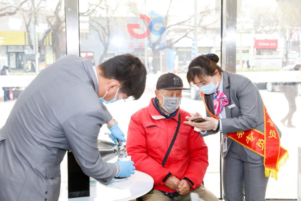送餐員、快遞小哥等戶外工作者走進來,或接杯熱水、或短暫地打個盹、或給手機充會兒電,這是中國電信西單營業廳最近每天都在上演的暖心情景。