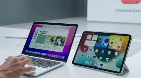 這個通用控制,是讓 MacBook 的觸控板,也能控制 iPad。或者把 iPad 的文件,直接拖拽到 MacBook 上。