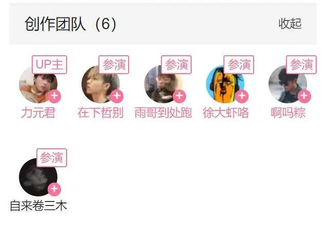 這六位 UP 主分別為啊嗎粽、力元君、老壇胡說、福樂小哥、徐大蝦咯、在下哲別。他們中的大部分曾入選年度百大 UP 主,粉絲都是百萬級別,橫跨生活區、游戲區、美食區等等。