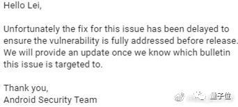 楊珉教授公開了幾封與安卓安全團隊之間的往來郵件,表示自漏洞提交到被谷歌修復以來,不知道收到了多少次 Delay: