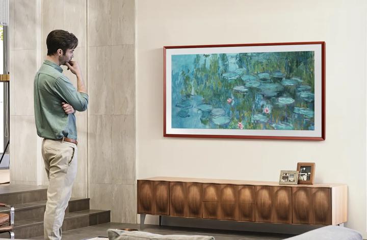 The Frame 系列畫框電視的成功很大程度要歸功于其簡約的設計,纖薄的機身搭配木質的邊框,讓人乍一看幾乎分辨不出它與真畫框的區別,可以讓任何你喜歡的藝術名畫、照片融入墻壁之中。