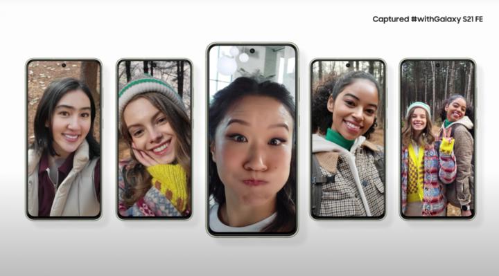 S21 FE 的前置攝像頭保持了中置挖空的設計,但規格有所提升,從 S21 上的 1000 萬像素升級成了 3200 萬像素。