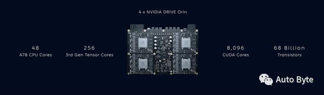 這 4 個芯片中,有 2 個主控芯片用于日常駕駛計算,可利用算力為 508 TOPS,1 個是備份用的冗余芯片,1 個是用于自動駕駛算法訓練的芯片。