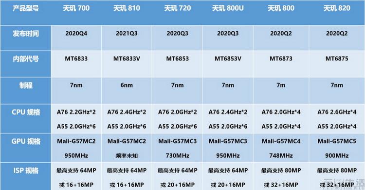 早在 2020 年我們三易生活就曾在相關內容中指出," 天璣 800U" 無論是從內部代號、還是從架構設計上來說,與其說是天璣 800 的 " 簡化版 ",不如說其實是天璣 720 的高頻版本。而到了 2021 年,天璣 810 的名稱則看起來更加讓人迷惑,但其實從內部代號和 GPU 配置上就不難發現,它其實是天璣 700 的改進版本,與天璣 800 和天璣 820 都沒有什么關系。