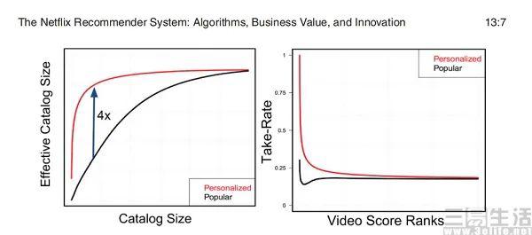 其中以 Netflix 的推薦系統為例,此前該公司曾表示," 推薦系統幫助 Netflix 贏得了關鍵時刻 "。根據關于 Netflix 推薦系統的研究報告表明,由于推薦系統的應用,該平臺被點播到的影片數量大幅提升,并且更為重要的一點在于,個性化推薦能夠顯著提高推薦影片被用戶接受的程度。