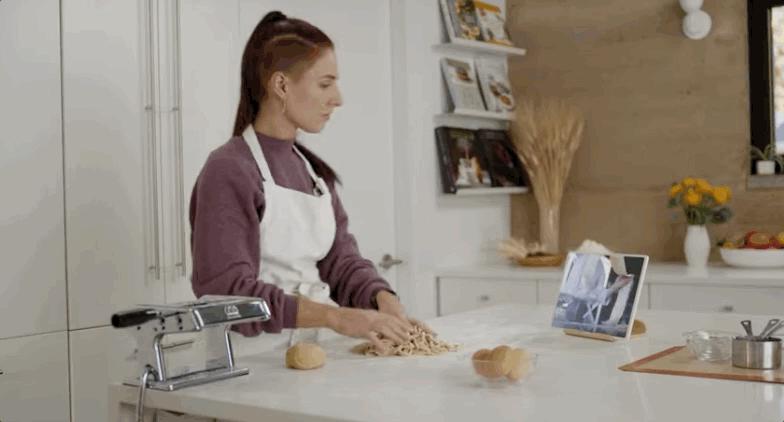 烹飪時用平板電腦實時播放菜譜視頻,當你離開去拿配料視頻自動停止,回來時視頻又自動播放。