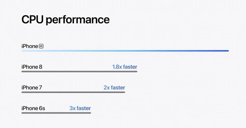 同時,新款 iPhone SE 用上和 iPhone 13 系列同款的 A15 仿生芯片,有 6 核 CPU 和 4 核 GPU,CPU 性能比 iPhone 8 提升 1.8 倍,GPU 處理速度比二代 SE 最高提升 1.2 倍,神經網絡處理能力提升 26 倍。