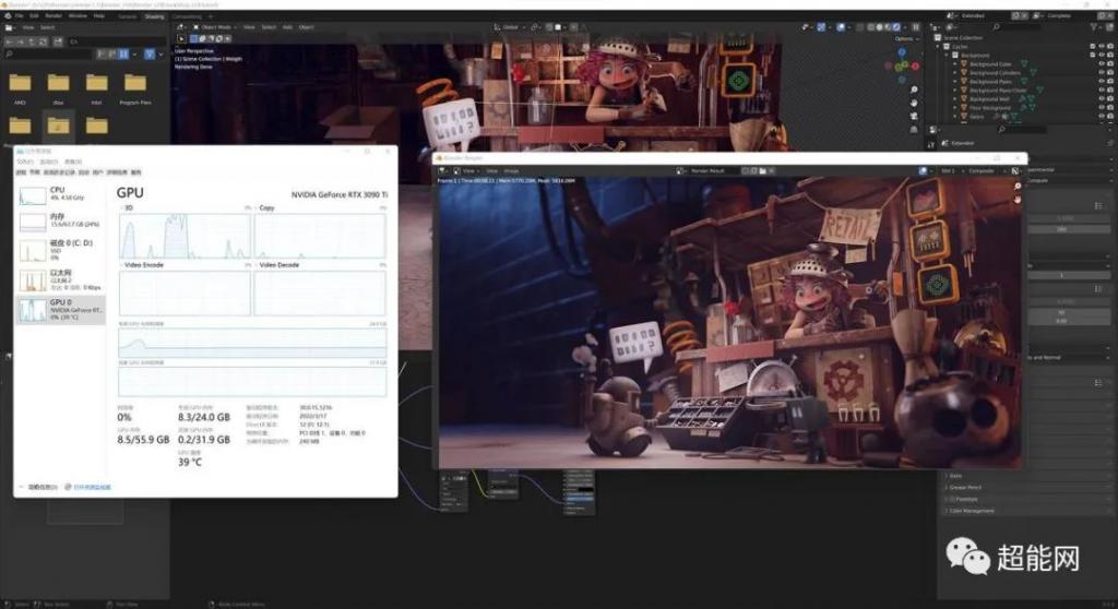 而GeForce RTX 3090 Ti則很輕松,大約18.5GB的項目數(shù)據(jù)全部可以放在顯存中,這也導致它渲染起來特別的快。