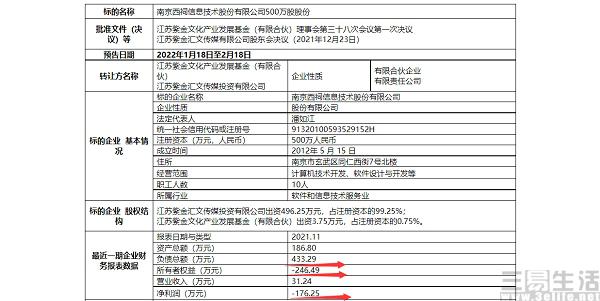 日前江蘇產權市場網發布的公告顯示,西祠胡同所屬公司 " 南京西祠信息技術股份有限公司 " 以 1 元的掛牌價格,轉讓 100% 股份(共 500 萬股),轉讓日期截止 2022 年 4 月 18 日。并且此前該公司曾發布過一輪轉讓公告,但并未征集到受讓方。