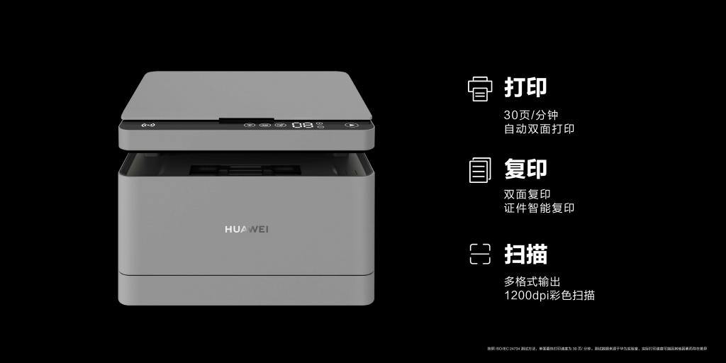 華為 PixLab B5 集打印、復印、掃描多功能為一體,支持自動雙面打印,根據華為實驗室數據,打印速度高達 30 頁 / 分鐘,搭載 HarmonyOS,支持多種辦公設備的快速連接、華為手機一碰即可輕松打印,證件復印可自動校正排版。