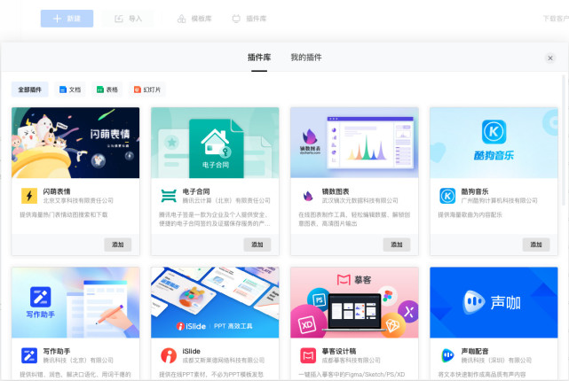 同時,進行多媒體文檔創作時,用戶能夠快速導入酷狗音樂提供的海量歌曲,在線預覽并剪輯制作視頻,還可以使用聲咖配音將文字內容生成高品質音頻內容。用于專業設計的摹客和MasterGo可快速還原產品真實體驗,隨時隨地進行團隊協作,實時更新讓想法更快變成現實。除此以外,插件庫也支持在線簽署具有法律效益的電子合同,為企業及個人提供安全、便捷的電子合同簽約及證據保存服務。