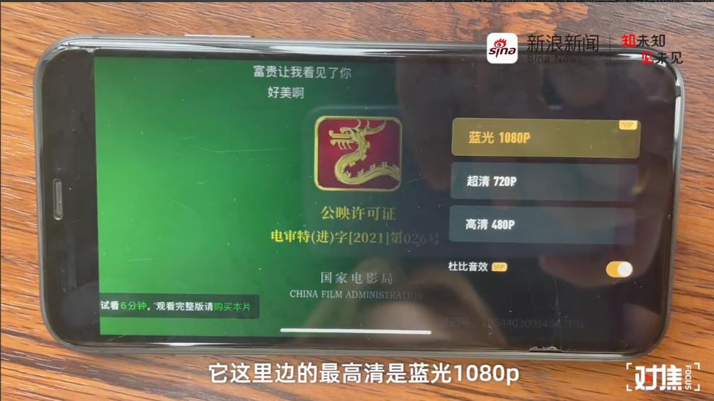 在展示視頻中,網友用安卓手機在愛奇藝看《魔法滿屋》,最高清晰度只支持 720p,但用蘋果手機卻能播放 1080p 畫質的視頻。
