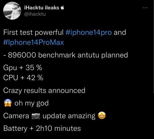 但網上保出來的相關消息又讓人有點不敢相信,因為提升幅度實在太大,堪稱 " 史詩級 " 升級,而 iPhone 14 上熱搜的依據,不出意外就是以下這張爆料圖片,我們就其中內容分開來說。