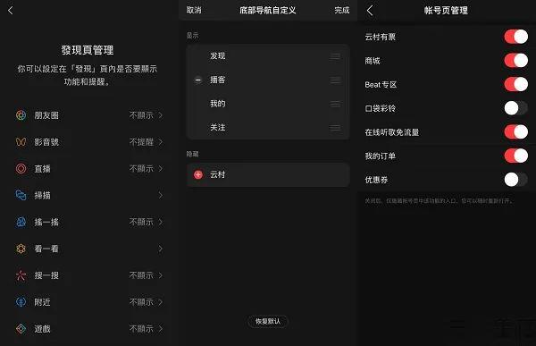 不僅諸如微信、支付寶等超級(jí)應(yīng)用,都開(kāi)始陸續(xù)支持用戶對(duì) " 首頁(yè) " 或 " 發(fā)現(xiàn)頁(yè) " 進(jìn)行管理、諸如網(wǎng)易云音樂(lè)等 APP,也開(kāi)始能夠?qū)Φ撞繉?dǎo)航自定義,以及對(duì)賬號(hào)頁(yè)進(jìn)行相關(guān)管理了。顯然,如今越來(lái)越多 APP 都給了用戶更多的選擇權(quán),甚至可以做到只保留核心功能。