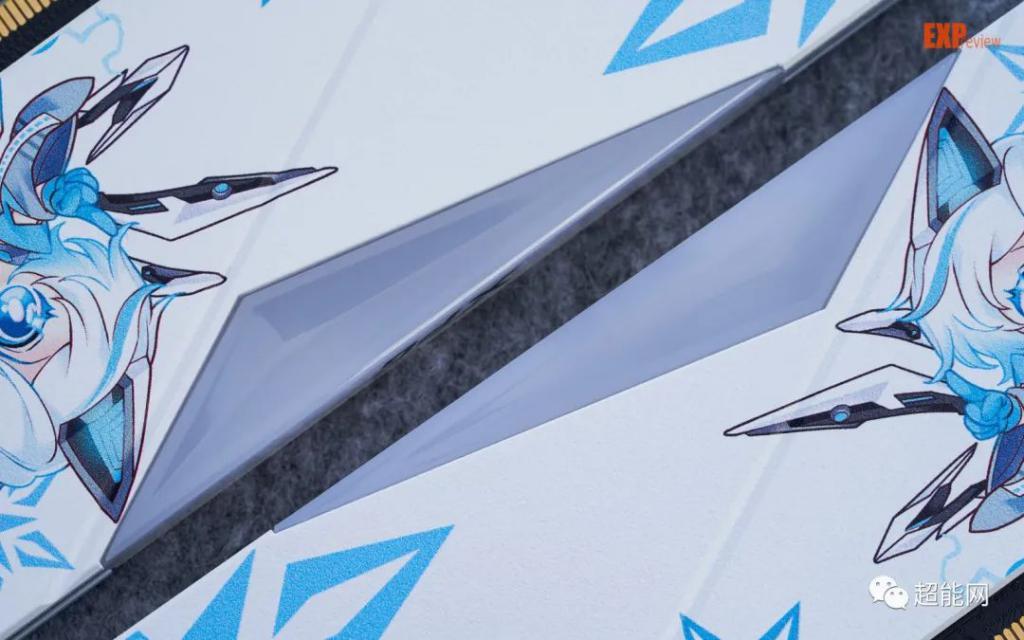 龍耀 LANCER DDR5 吹雪和上代龍耀 D50 吹雪所用的散熱器外形相似程度很高,內存表面依然是釉白色,頂部有三角形的導光條,龍耀 LANCER RGB DDR5 吹雪內存上的刻線從三條變成一條,不過內存表面的彩繪就比上代豐滿得多了,除了可愛的 RO 姬雪舞戰姬外,還增加了一些冰晶圖案做點綴,內存右上角有 ROG STRIX 吹雪字樣。