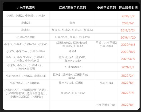 其中,小米平板、小米平板 2 和小米平板 3 早在 2020 年 4 月 8 日就停止服務了,小米平板 4 也在今年 5 月停止服務。