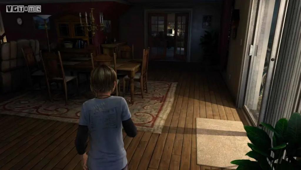 《第一部》對所有關卡場景都進行了重新搭建,因此在一些小細節上做的比過去更好。例如在游戲開場,原本空蕩的床頭柜現已被各種小玩意烘托出更多生活氣息,玩家扮演莎拉下樓后必然會被劃破寂靜的手機鈴聲所吸引,且不說光影升級與手機壁紙的細心變化,在放下手機后,玩家會自然注意到正對面書房照在地板上的亮光。像這樣細致入微卻又不至于破壞氛圍的引導,比重制版做的更好。