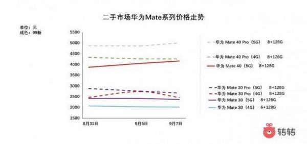 此外,從數(shù)據(jù)來看,同版本的二手 Mate40 Pro(5G)和 Mate30 Pro(5G)的售價也在 Mate50 系列發(fā)布后出現(xiàn)微漲。