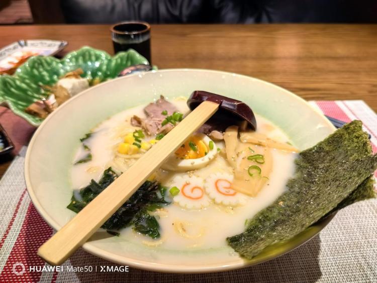 從樣張中可以看到,在近景拍攝物體時,主體后面的虛化效果很自然。而在拍攝美食這類不需要背景虛化效果時,Mate50 可通過 AI 識別,自動切換到小光圈,讓用戶清晰的看到其他菜品。