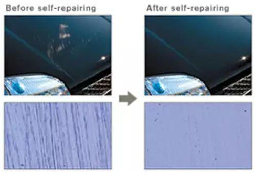 當汽車表面車漆噴涂上這種清漆后,就可以通過一段時間自動修復細小的刮痕。