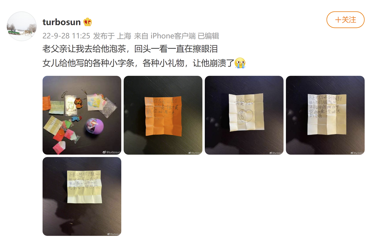 9月28日,孫儷在社交平臺曬出女兒為鄧超準備的各種筆記和小禮物,并配文:“老爸讓我給他泡茶,回頭看的時候一直擦眼淚,我女兒給了他。他寫的各種小紙條和禮物讓他崩潰了。鄧超的女兒在小紙條上寫道:“爸爸,你在我心里永遠都是完美的,你沒有缺點。”這兩句話說穿了,應該是對超哥下班回來最好的安慰,果然是一件貼心的小棉襖!