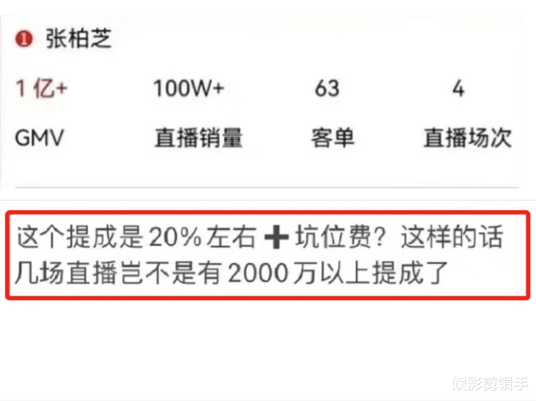 而有懂行的網友則透露,光是這一場直播,張柏芝能獲得的提成就高達2000萬以上,從而引發網友熱議。