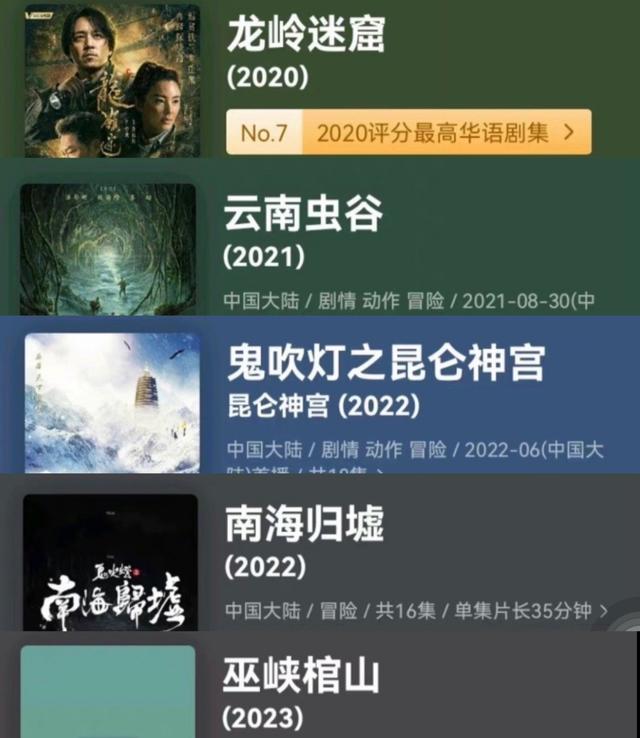 客觀來說,從投出產出、劇集質量本身來說,“鬼吹燈”仍然有不小的上升空間,然而這種頭陣、打樣的效應,在整個國產劇集的發展當中不可忽視。在“鐵三角”一同冒險到第三個年頭的2022年,“系列化改編”這個過去難得一見的現象,頻繁出現。