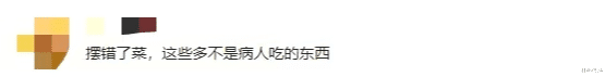 還有網(wǎng)友在評論區(qū)說擺錯了菜,這些大多不是病人吃的東西。