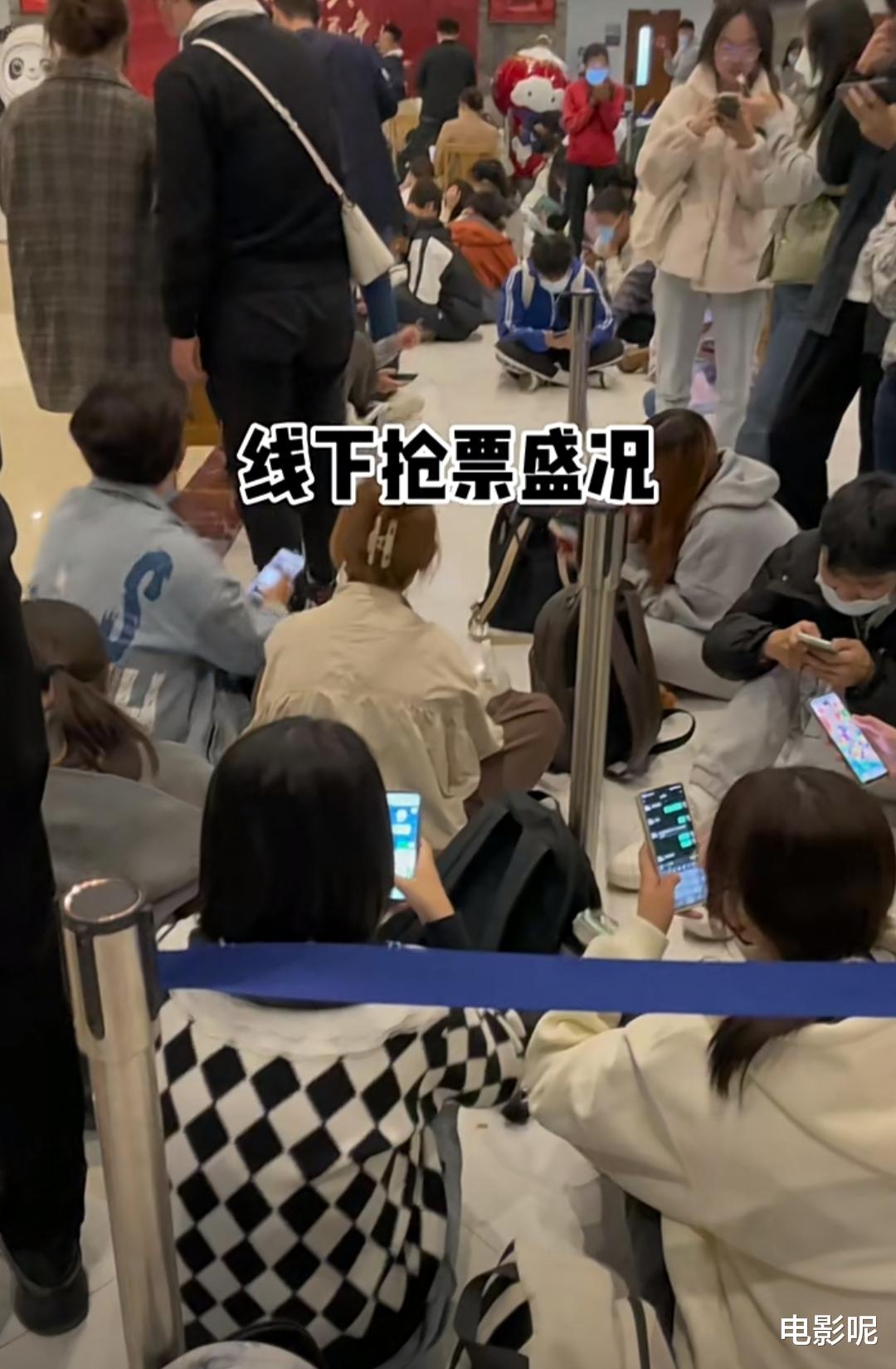 線下?lián)屍币彩欠浅;鸨F(xiàn)場大排長龍,隊伍長到大家都是直接席地而坐等待。現(xiàn)場還有姜水補給,和保安值守,可以說場面還是非常浩大的。而北大里面的學(xué)生透露,當(dāng)天七點拿票,五點就有人在排隊了。
