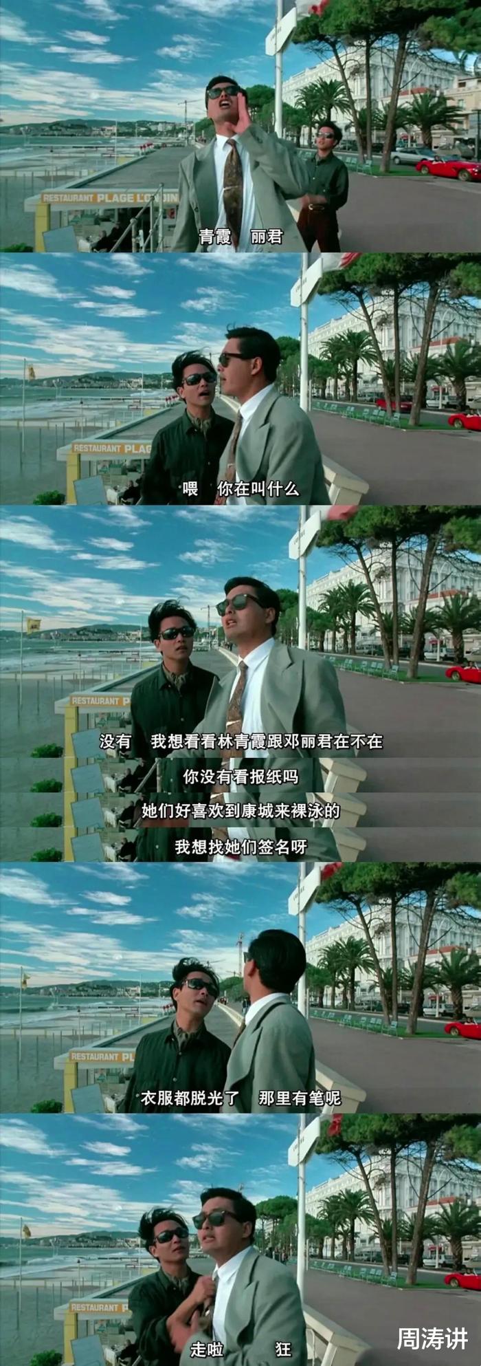 《四海彼岸》中有一個場景,周潤發和張國榮在戛納戲弄林青霞和鄧麗君裸泳。時隔多年,林青霞本人在姜文的采訪中談到——