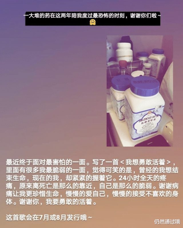 24小時(shí)的疼痛一度讓她想要結(jié)束自己的生命。寫完這首歌后,她松了一口氣,接受了自己的不完美,決定勇敢地生活。