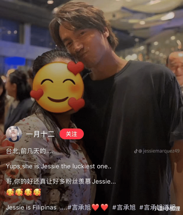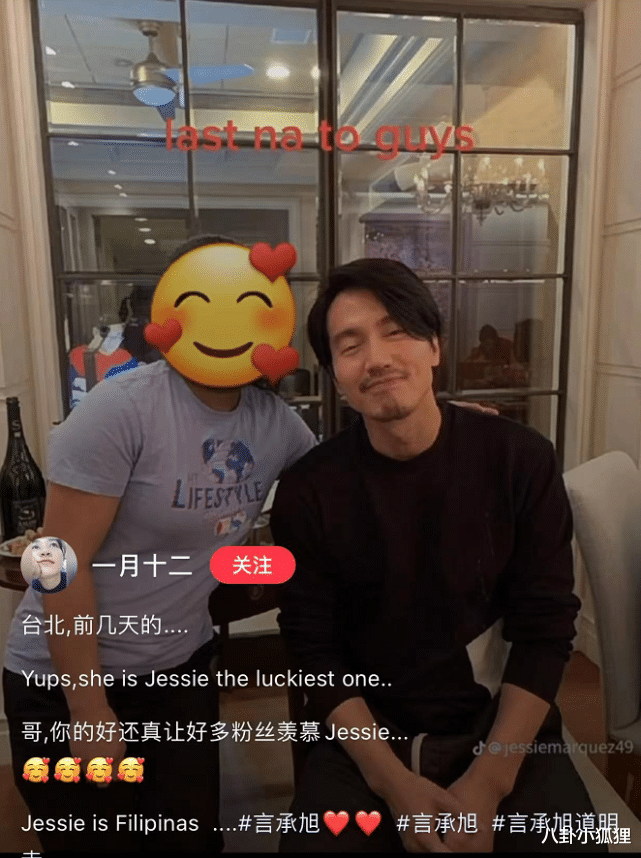 10月12日有粉絲曬出與男星言承旭的多張合照,曬照人稱,合照是幾天前在中國臺北拍攝的,可見是近照。