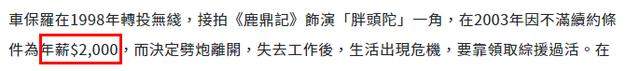 但是對于車保羅來說,雖然有了名氣,但是收入并沒有增加,原來TVB的演員工資都非常低,雖然出演了不少作品,但是生活并沒有得到太大的改善,據(jù)悉當(dāng)時(shí)車保羅的年薪只有2000港元(約1645元人民幣),因此后來合約到期后,他就離開了TVB。