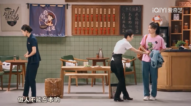節目設計了一個飯店,企業文化是“媽媽的味道”,沉浸式體驗,店員上來就碎嘴子: