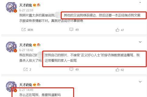 可是在很多人看來,這樣的照片再正常不過了,只不過是一些分享日常生活的照片,這些的照片怎么會引來一些人如此指責?看著評論區這些人對自己無休止的謾罵,網紅“天才奶兔”出來反擊了,她在評論區評論到,“真是好話說盡壞事做絕”。自己本身是發布的一組普通的照片,哪里有他們說的不自愛,不檢點,不自覺,難道這些人的審美就僅僅停留在這里了?
