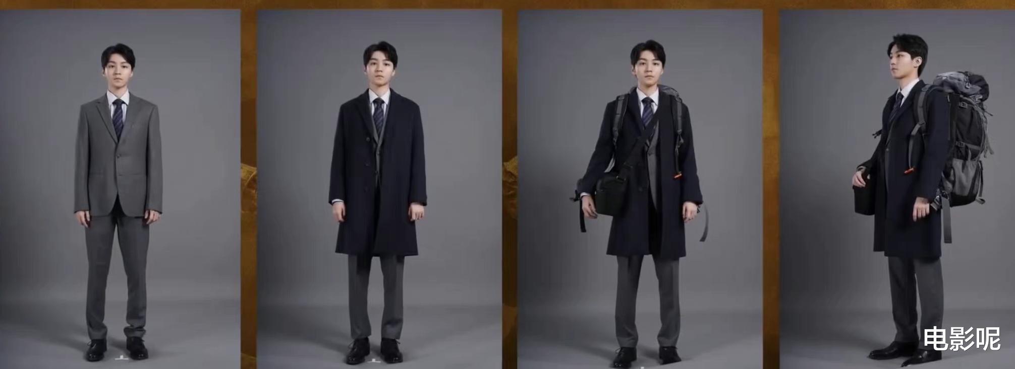 除了臉上的造型,在服裝上王俊凱的造型也特別有趣,就像是生存類游戲初始人物設定,然后打開商城一件件加武器裝備,從頭到腳,全部加滿。從最開始的一套灰色西裝,再加一件黑色大衣,最后是生存裝備,一個鼓鼓囊囊的大背包。