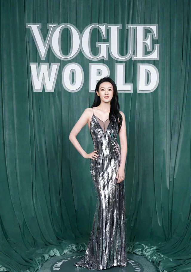 童瑤:童瑤的全包眼線真的很好看,黑色長發搭在美背上,身穿銀色豎紋長裙露美背,搭配黑色細高跟,越是簡約越性感!