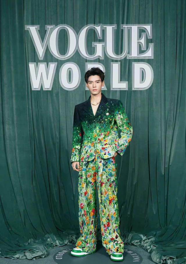 龔?。嚎∽酉蔡嶙约旱摹皦糁星橐隆睗u變色綠色印花造型,宛如一幅油畫,這是把花園穿在了身上吧!