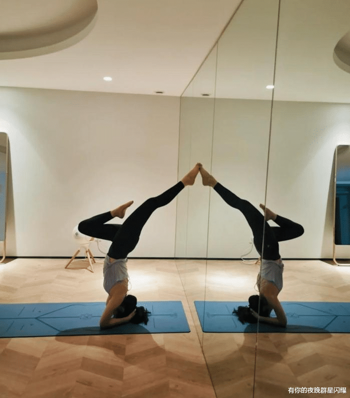 圖片里,陳妍希做著各種高難度的動作。身材纖細,小腹平坦。