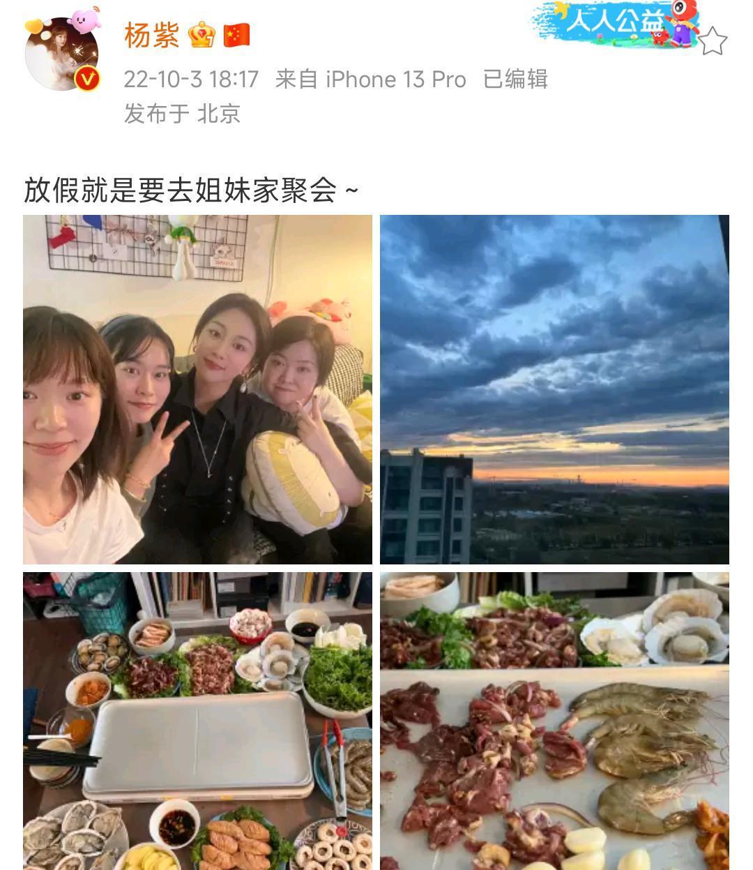 10月3日,楊紫則在社交網(wǎng)上更新了四張照片,從發(fā)文中可見,她是去姐妹家里聚會(huì)了,看來這個(gè)假期楊紫也沒有閑著。